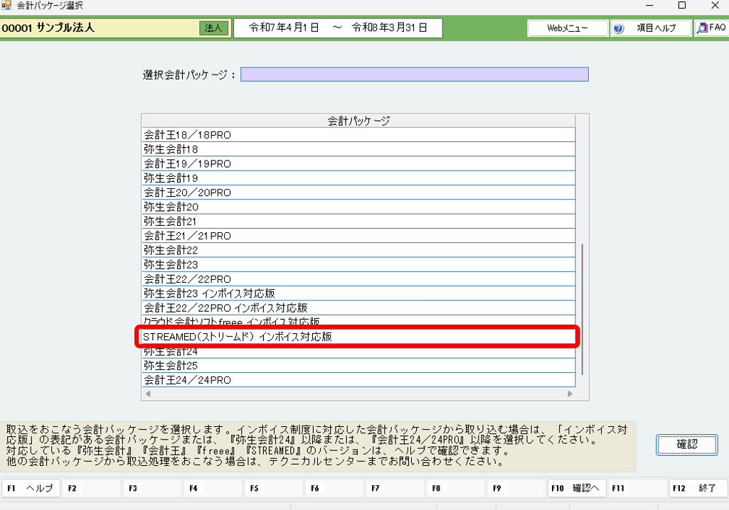 (2)[STREAMED(ストリームド)インボイス対応版]を選択します。