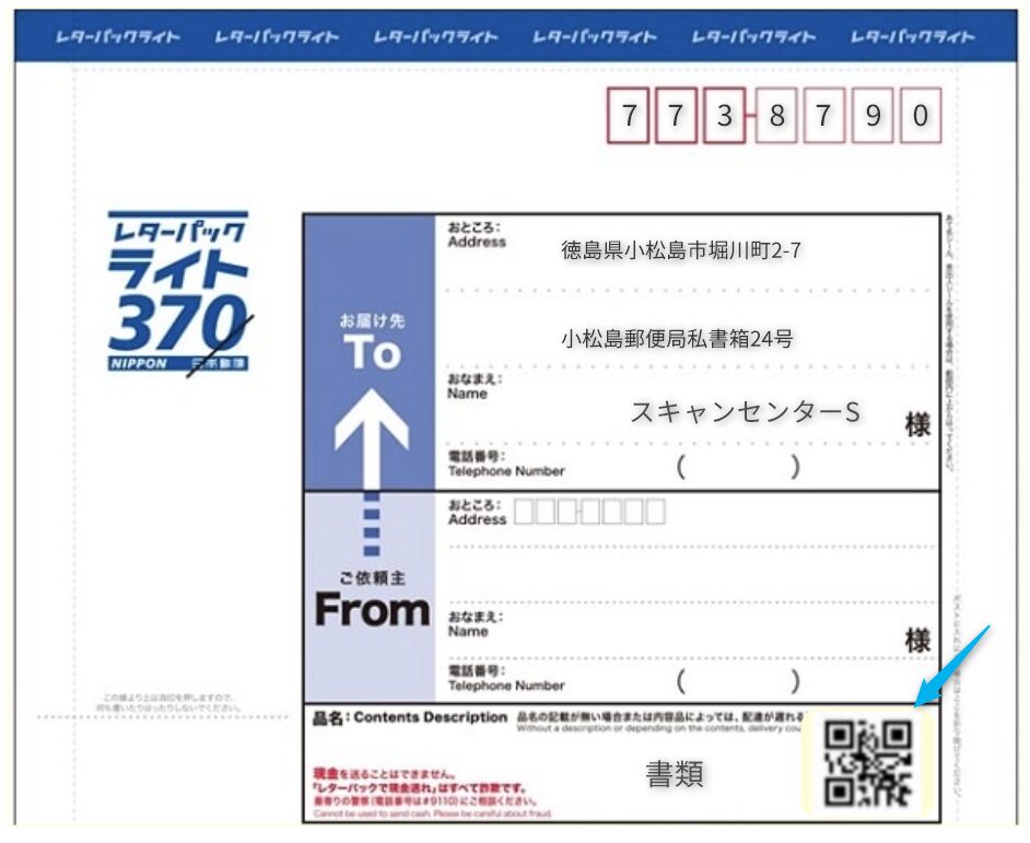 レターパックの場合はQRコード画像を印刷し貼り付ける。