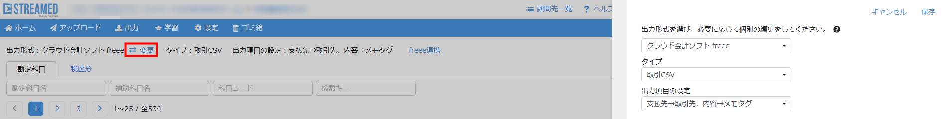 STREAMEDから仕訳データをダウンロード