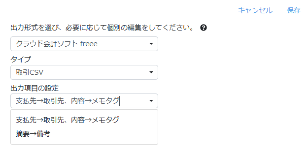 • 取引CSV:現金の経費を取り込む場合に選択します。