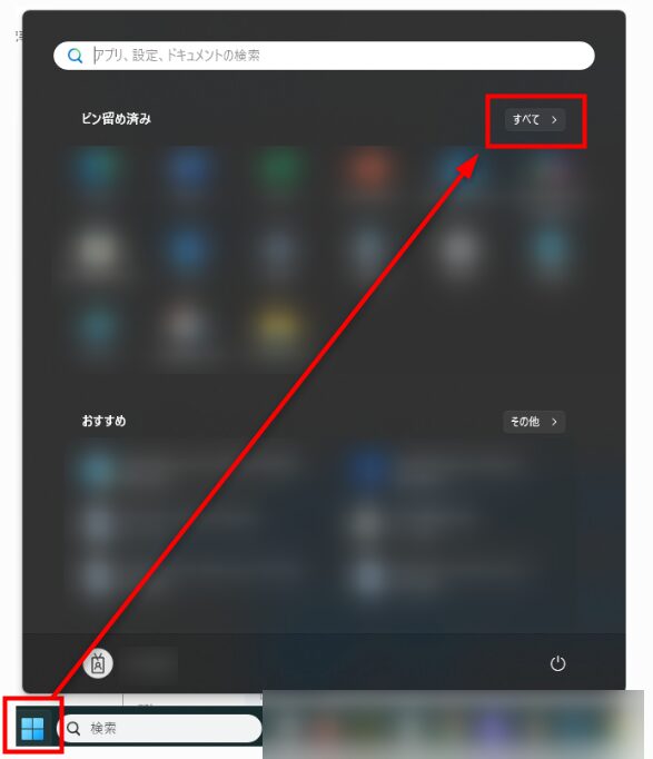 ※画面左下のWindowsマークをクリックし、スタートメニューを立ち上げ、スクロールをして[ P ]の項目をご参照ください。