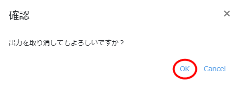 (2)取り消しを行う履歴にチェックを入れて、「出力を取り消す」をクリックします。