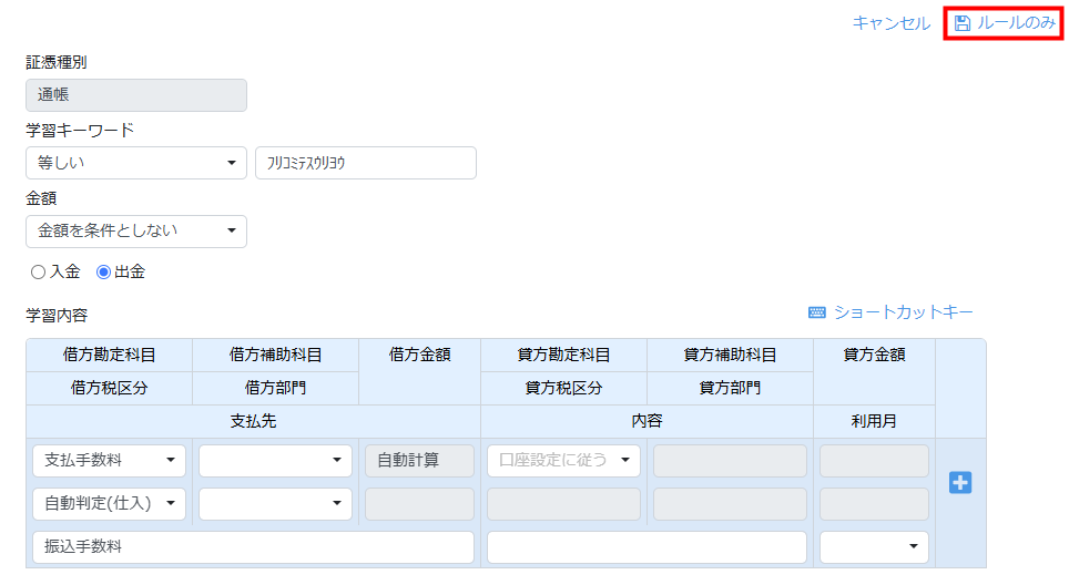 内容を確認し、「ルールのみ」(保存)をクリックして学習を登録できます。